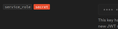 Necesitamos la url y el service role secret, los guardamos en las variables: SUPABASE_URL y SUPABASE_SERVICE_KEY respectivamente.