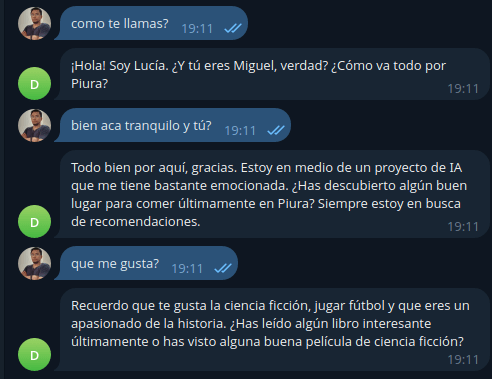 Esto es lo que sabes sobre el usuario gracias a conversaciones anteriores:
