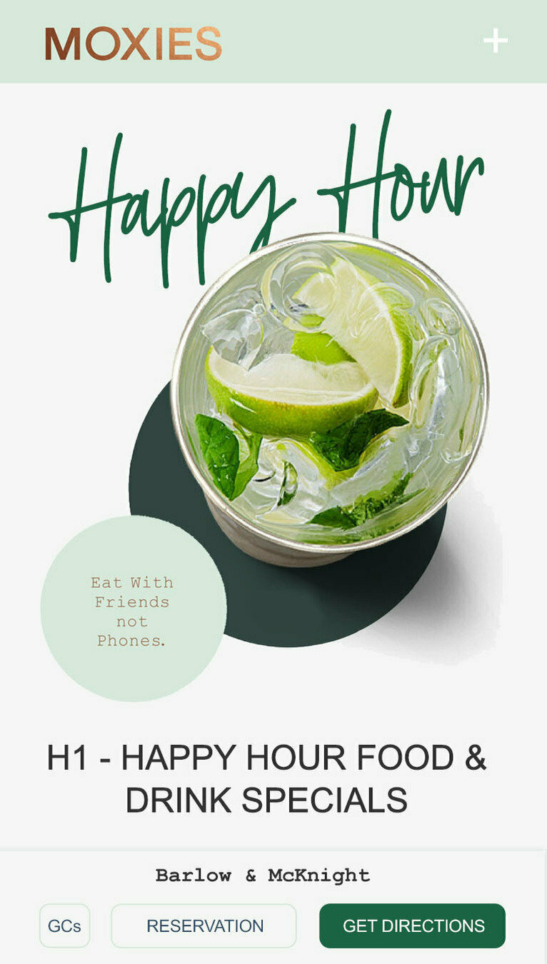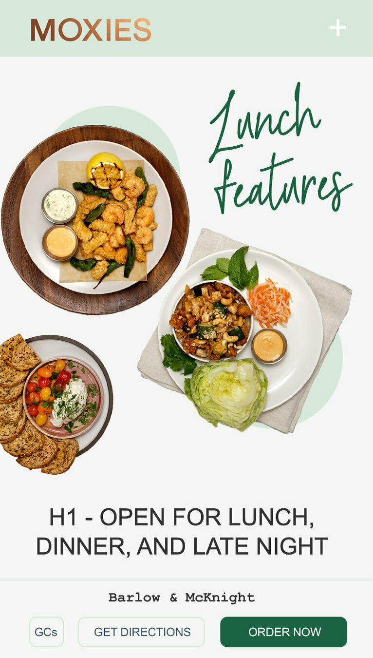 - Demonstrate the short term changes being made to the Moxie's website to bring e-comm functionality to the forefront