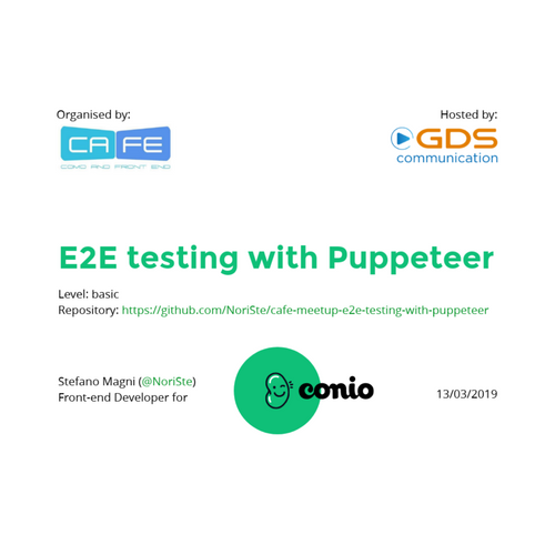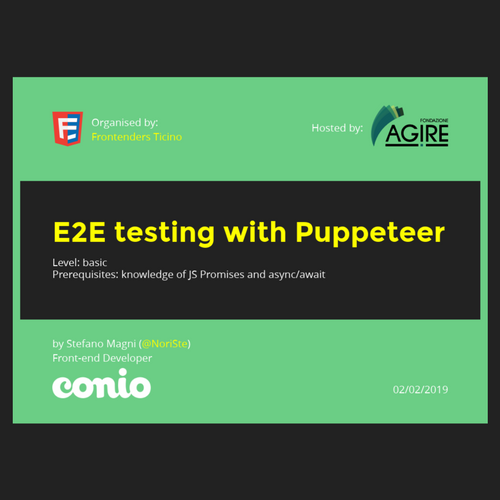In fall 2018 I had a workshop for the FETI (FrontEnders Ticino) community in Chiasso (https://www.meetup.com/it-IT/FrontEnders-Ticino/events/258183736/). The workshop aimed to introduce the attendees to the amazing world of browser automation, mostly for E2E testing but some exercises were about web scraping too.
