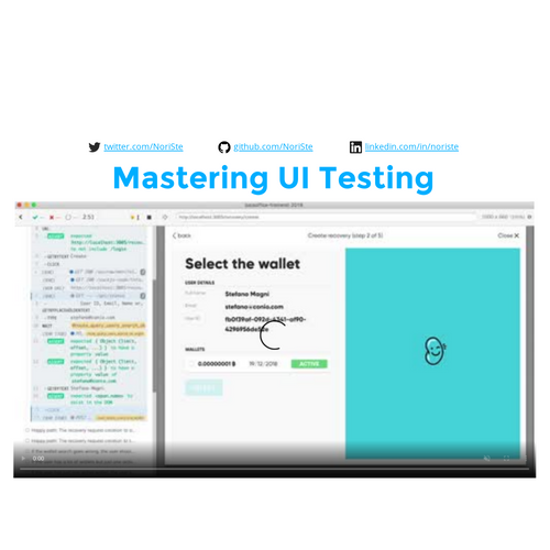October 2019, Voxxed Days Ticino 2019 (https://voxxeddays.com/ticino/) --- Abstract: Have you ever wrote a successful UI test? How many times did you end up discarding a UI test because it's brittle and unmaintainable? And even if you don't write tests, tell me: do you click/type/click/click/setcookie/click/click while developing your UI? --- I'm going to explain you the most important best practices that allow you to master the UI tests hell, sleep at night (because you are sure your project works as expected), test the back-end responses too and completely revolutionize the way you develop your UI! --- I'm going to talk about - UI testing best practices - live demos with Cypress - improve your workflow using a UI test framework as your everyday working tool (so it's not only about testing)