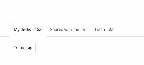 Tags are listed at the top of the page and on each tagged deck.