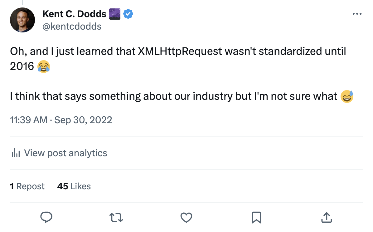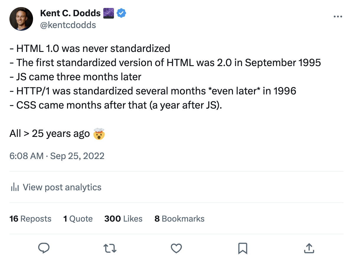 The web. What started as a document sharing platform has evolved into an application platform. The web has been through a number of transformations over the years. From static HTML files to dynamic server-generated HTML responses. Then to REST or GraphQL APIs consumed by JavaScript-heavy clients with the Jamstack. The web is entering a completely new transformation. Modern infrastructure and techniques have changed the rules of what it means to make an excellent user experience. In this new future, what's old is new and what's modern is lacking. In this keynote, Kent C. Dodds will show you how this transformation will impact your user experience, your development productivity, and your business goals. The future of the web is distributed. It's faster. It's cheaper. It's exciting. Kent will show you what you can do to stay in front of it (and no, it's not web3).